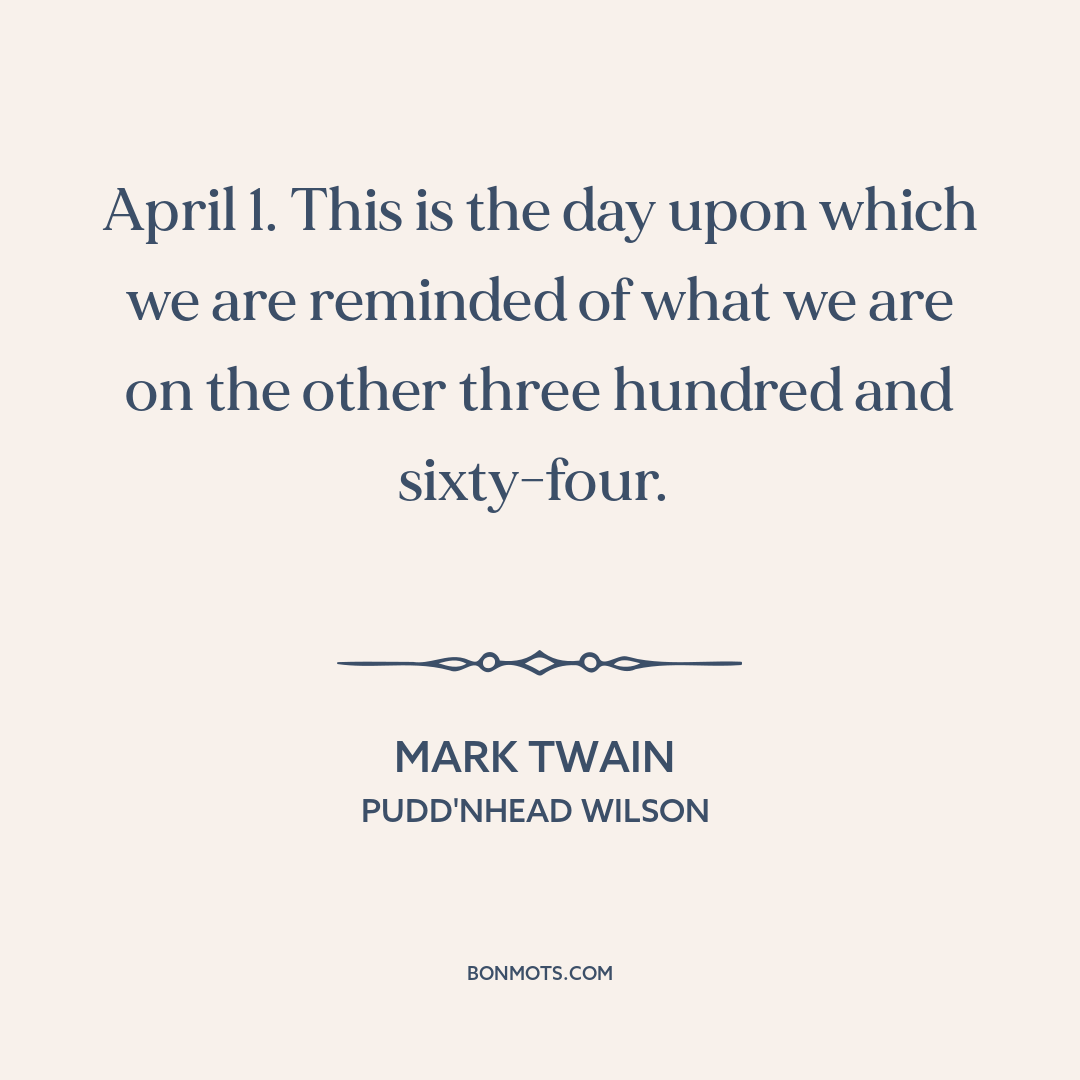 April 1. This is the day upon which we are reminded of what we are on the other three hundred and sixty-four.