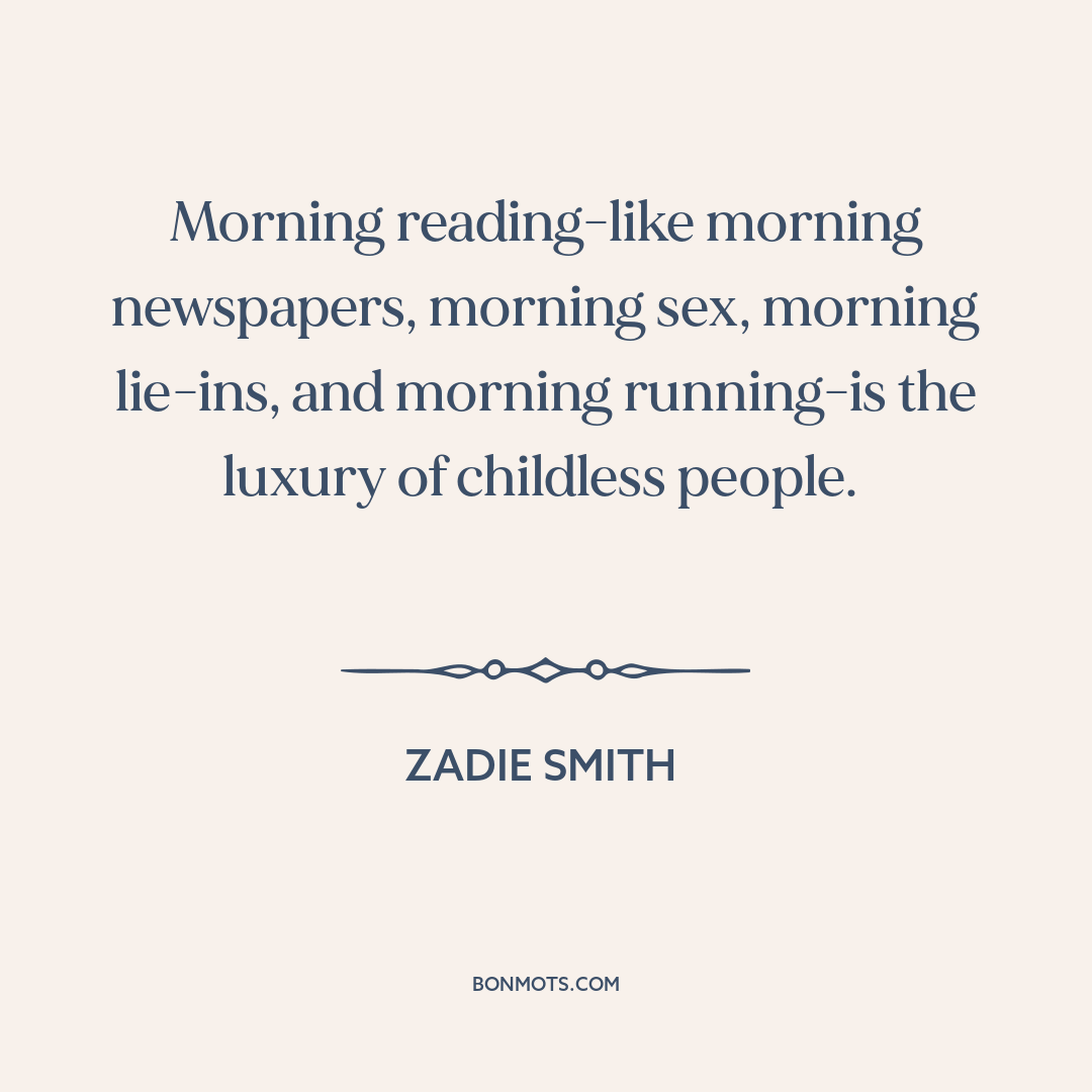 Morning reading-like morning newspapers, morning sex, morning lie-ins, and morning running-is the luxury of childless people.