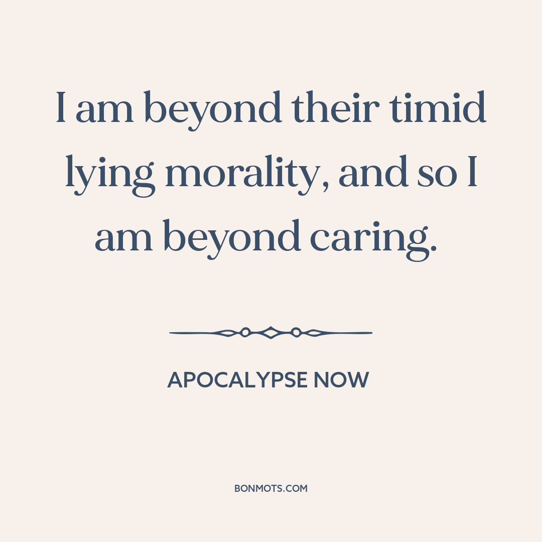 I am beyond their timid lying morality, and so I am beyond caring.