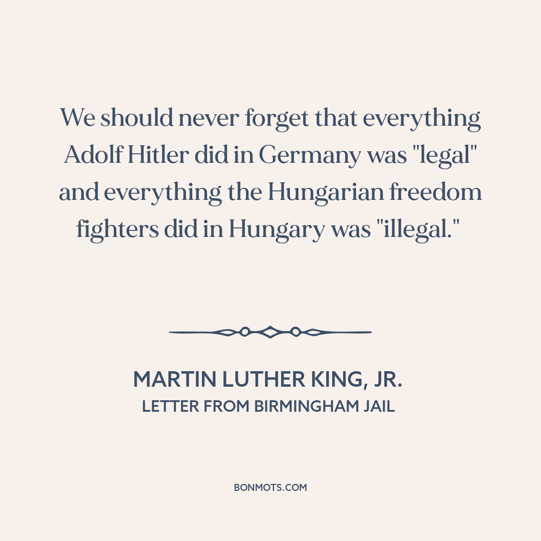 We should never forget that everything Adolf Hitler did in Germany was "legal" and everything the Hungarian freedom fighters did in Hungary was "illegal."