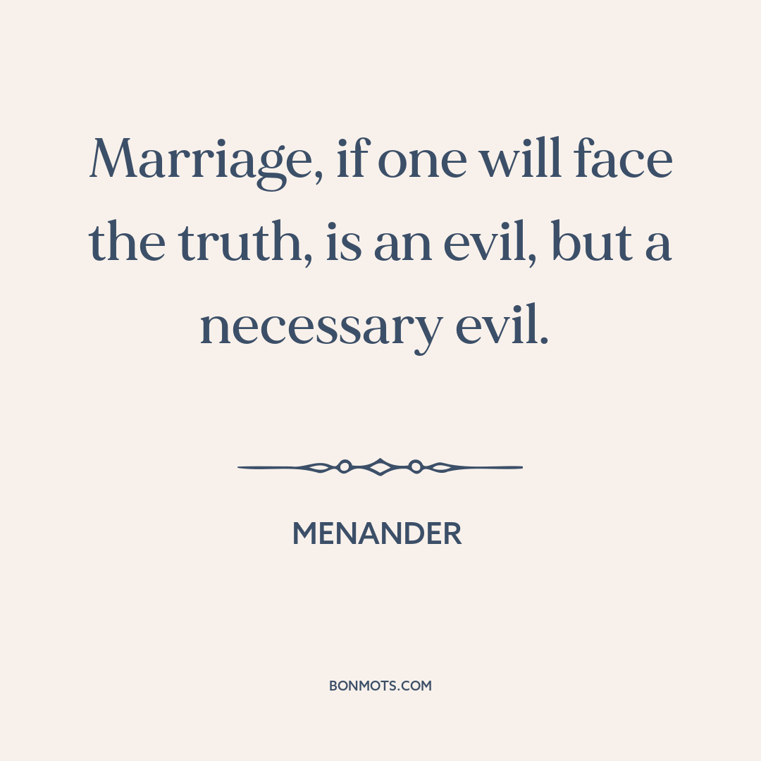 Marriage, if one will face the truth, is an evil, but a necessary evil.