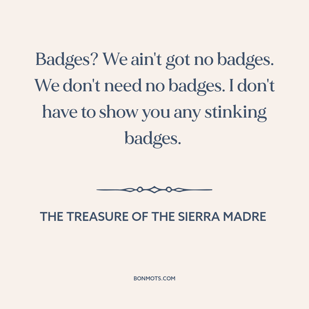 Badges? We ain't got no badges. We don't need no badges. I don't have to show you any stinking badges.