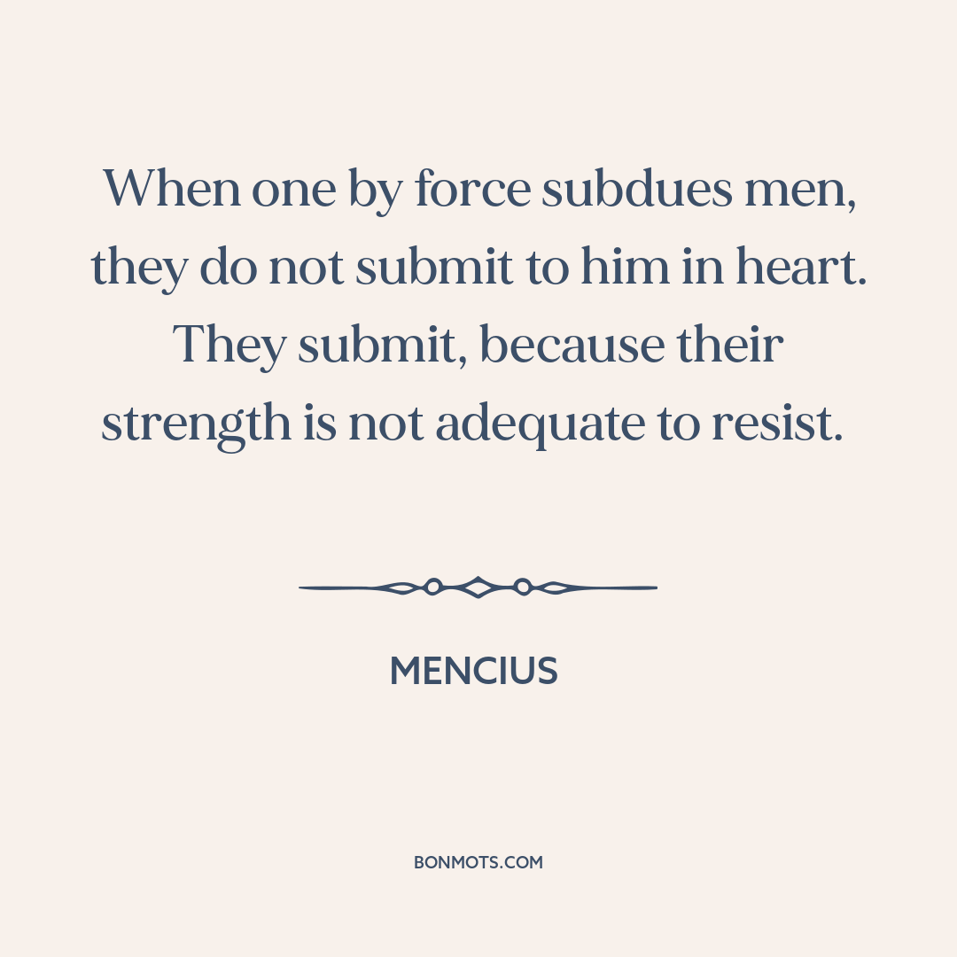 When one by force subdues men, they do not submit to him in heart. They submit, because their strength is not adequate to resist.