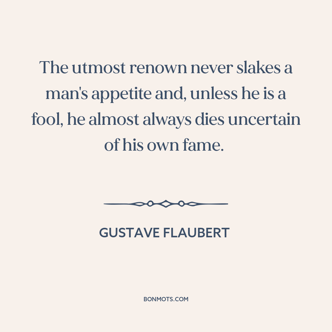 The utmost renown never slakes a man's appetite and, unless he is a fool, he almost always dies uncertain of his own fame.