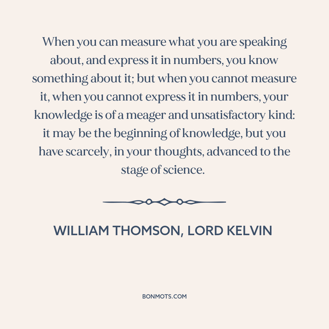 When you can measure what you are speaking about, and express it in numbers, you know something about it; but when you cannot measure it, when you cannot express it in numbers, your knowledge is of a meager and unsatisfactory kind: it may be the beginning of knowledge, but you have scarcely, in your thoughts, advanced to the stage of science.