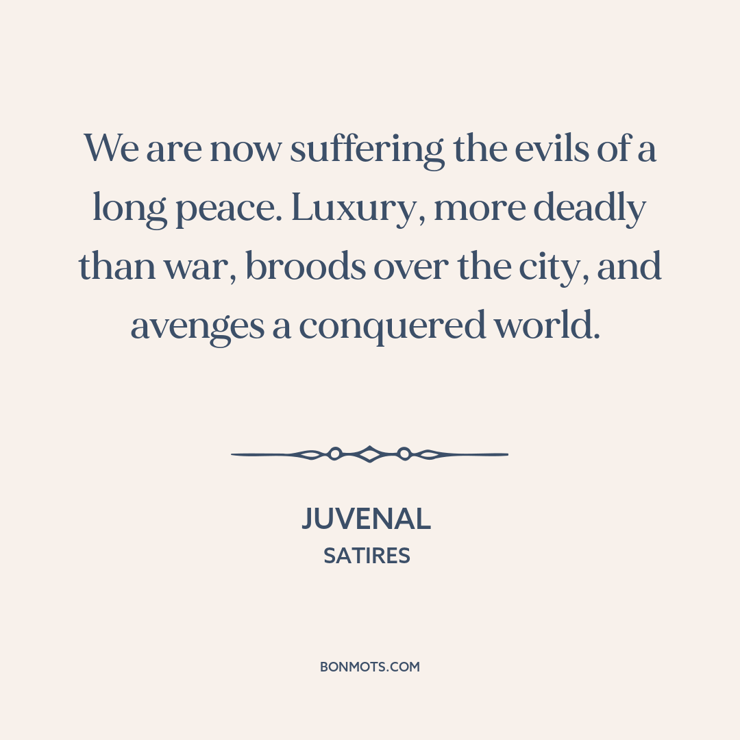 We are now suffering the evils of a long peace. Luxury, more deadly than war, broods over the city, and avenges a conquered world.