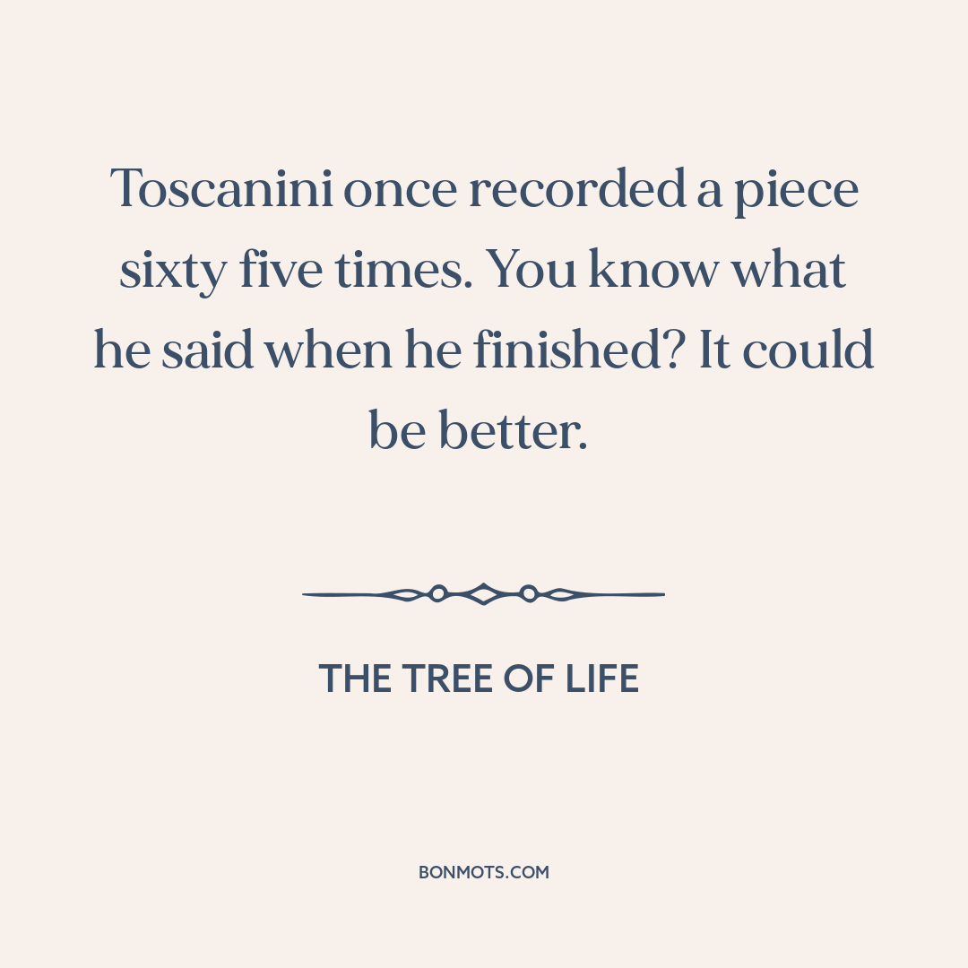 Toscanini once recorded a piece sixty five times. You know what he said when he finished? It could be better.