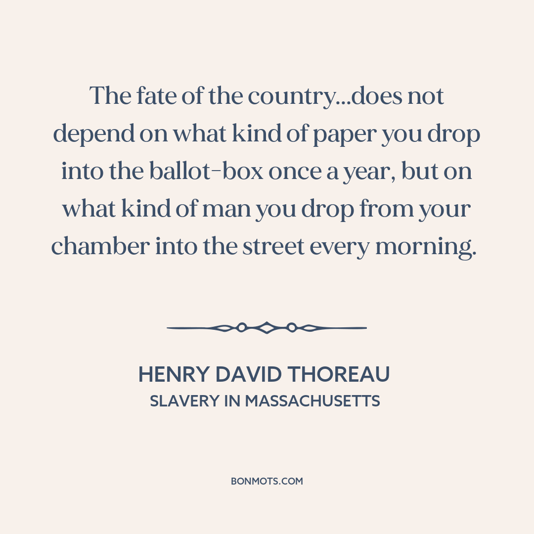 The fate of the country...does not depend on what kind of paper you drop into the ballot-box once a year, but on what kind of man you drop from your chamber into the street every morning.