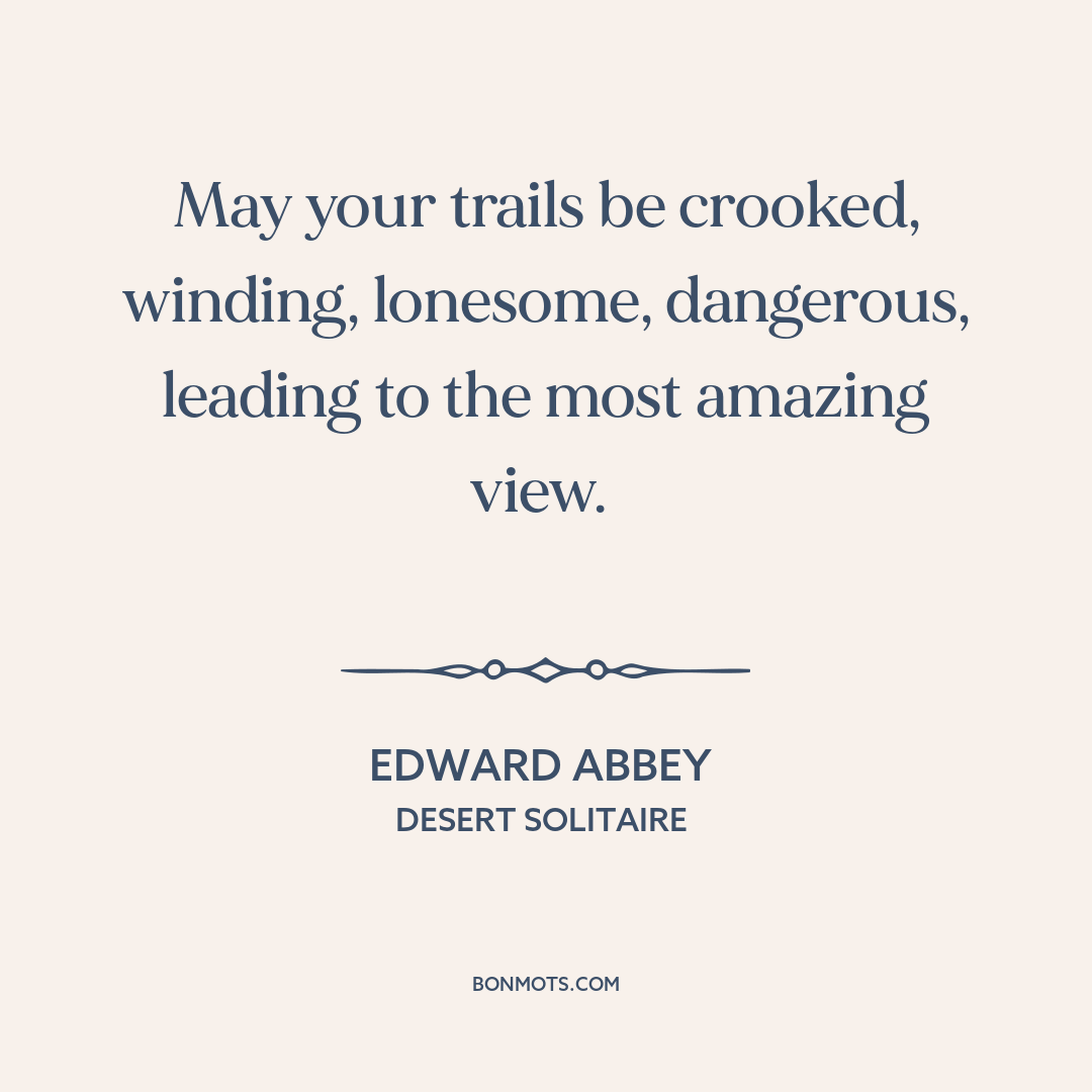 May your trails be crooked, winding, lonesome, dangerous, leading to the most amazing view.