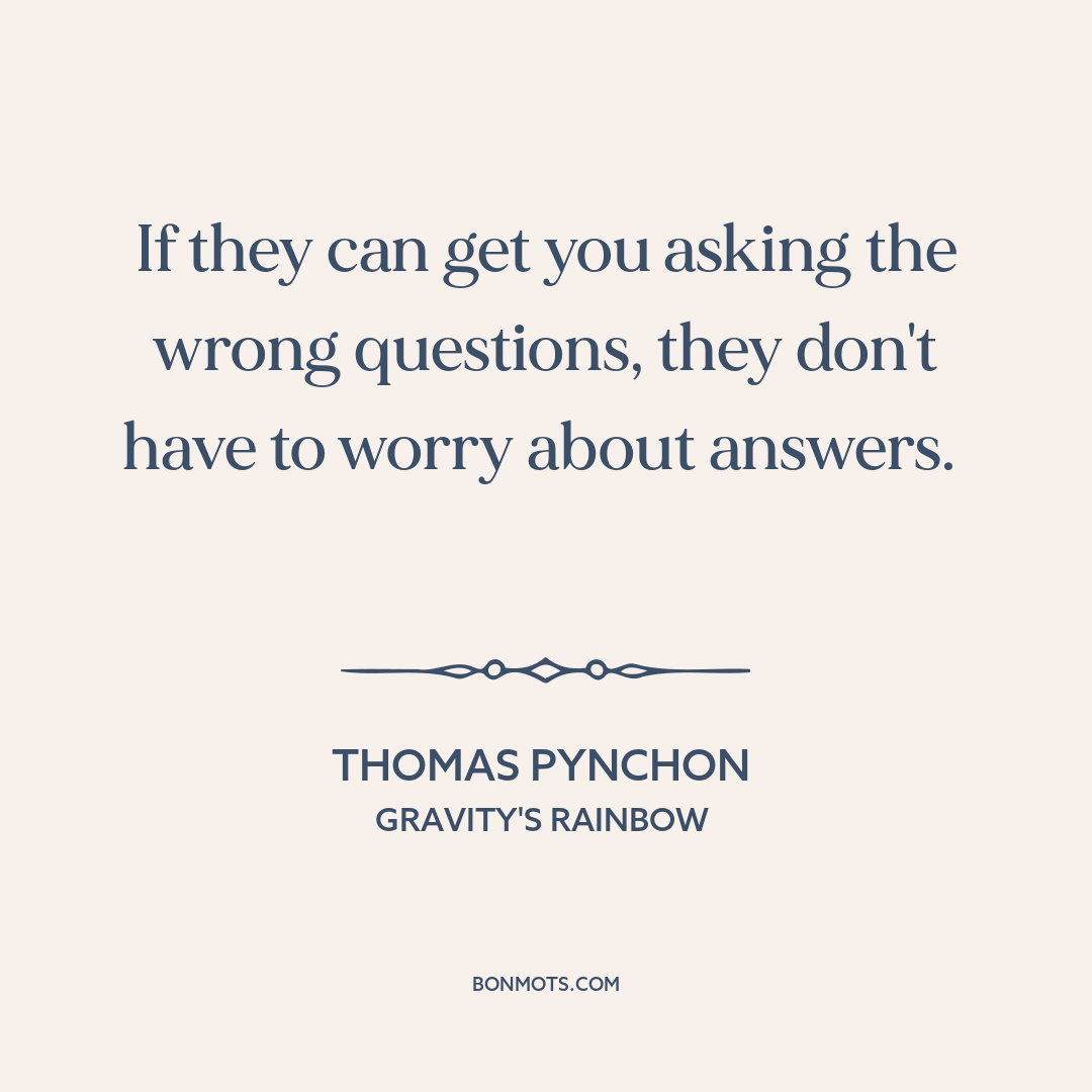 If they can get you asking the wrong questions, they don't have to worry about answers.