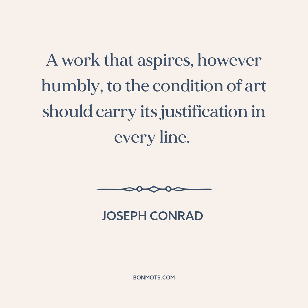 A work that aspires, however humbly, to the condition of art should carry its justification in every line.