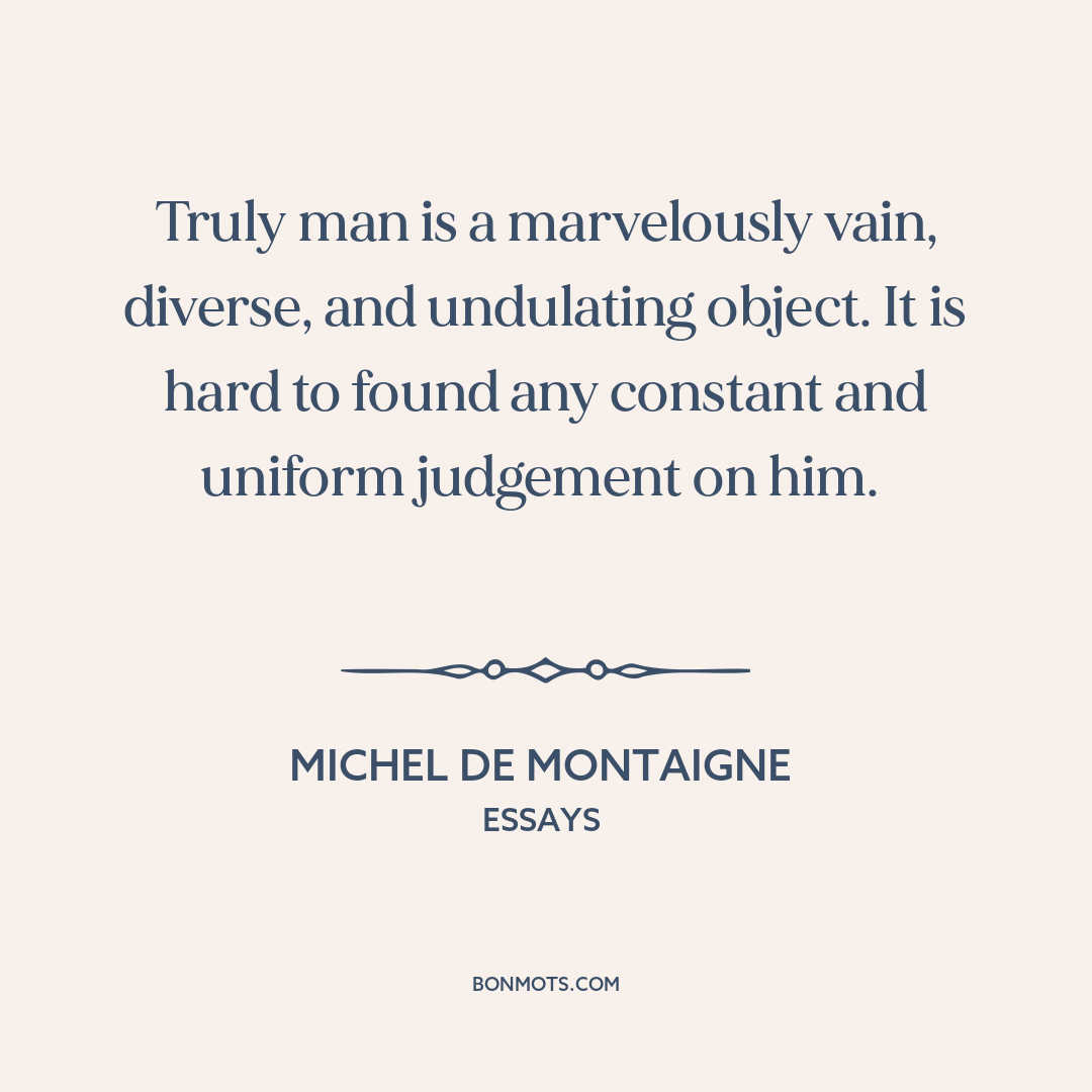 Truly man is a marvelously vain, diverse, and undulating object. It is hard to found any constant and uniform judgement on him.