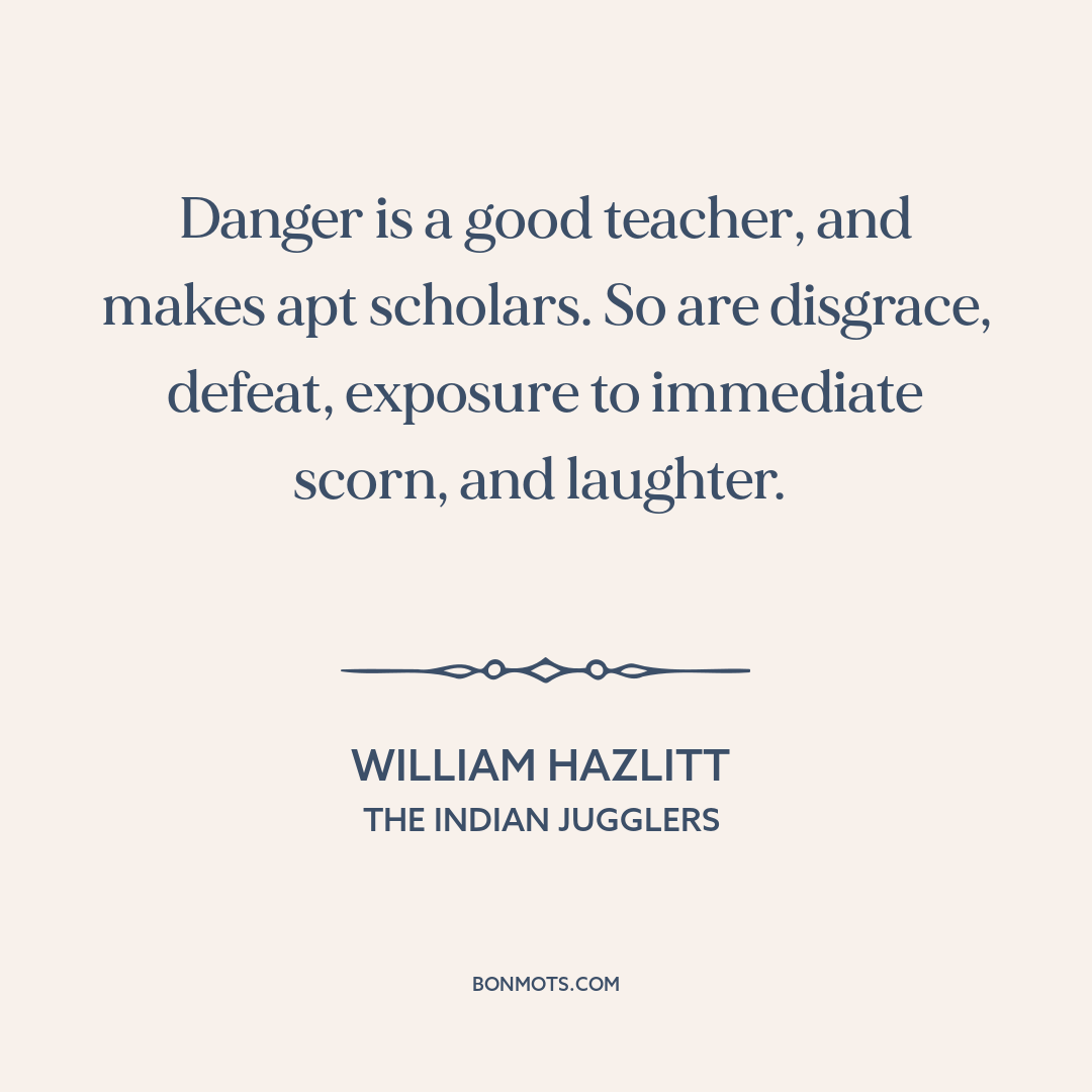 Danger is a good teacher, and makes apt scholars. So are disgrace, defeat, exposure to immediate scorn, and laughter.