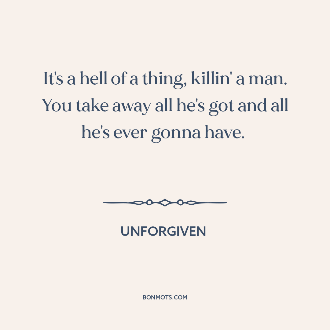 It's a hell of a thing, killin' a man. You take away all he's got and all he's ever gonna have.