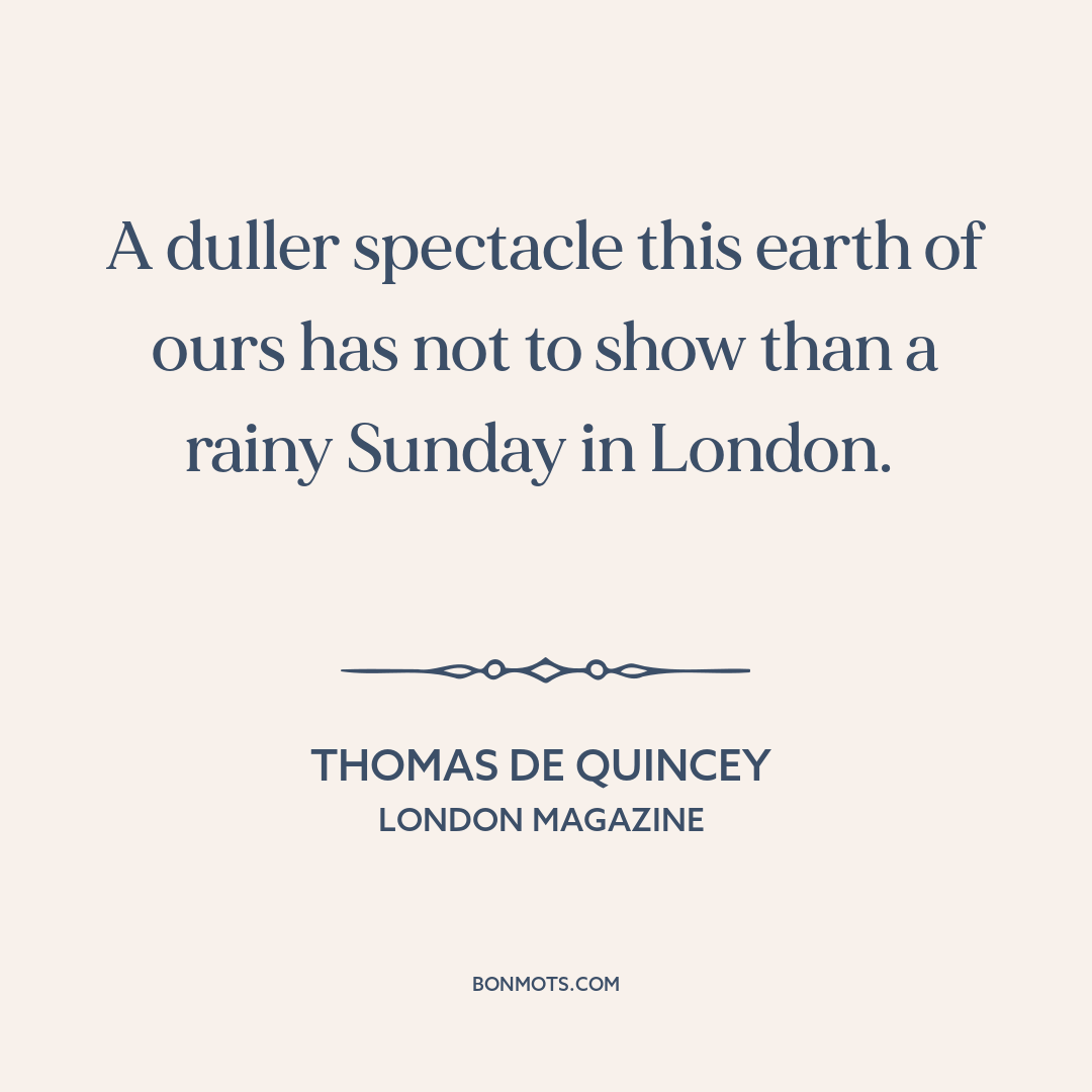 A duller spectacle this earth of ours has not to show than a rainy Sunday in London.