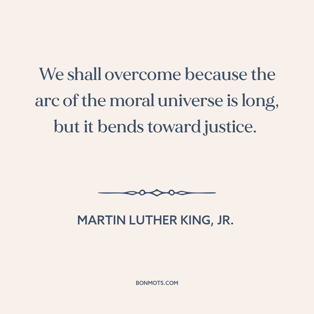 We shall overcome because the arc of the moral universe is long, but it bends toward justice.