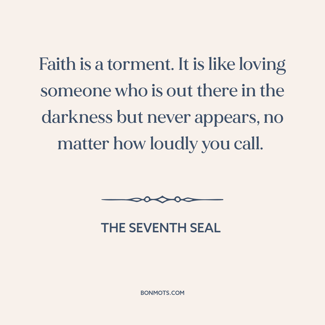 Faith is a torment. It is like loving someone who is out there in the darkness but never appears, no matter how loudly you call.