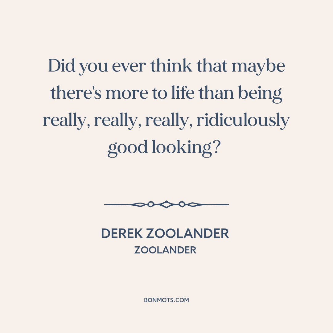 Did you ever think that maybe there's more to life than being really, really, really, ridiculously good looking?