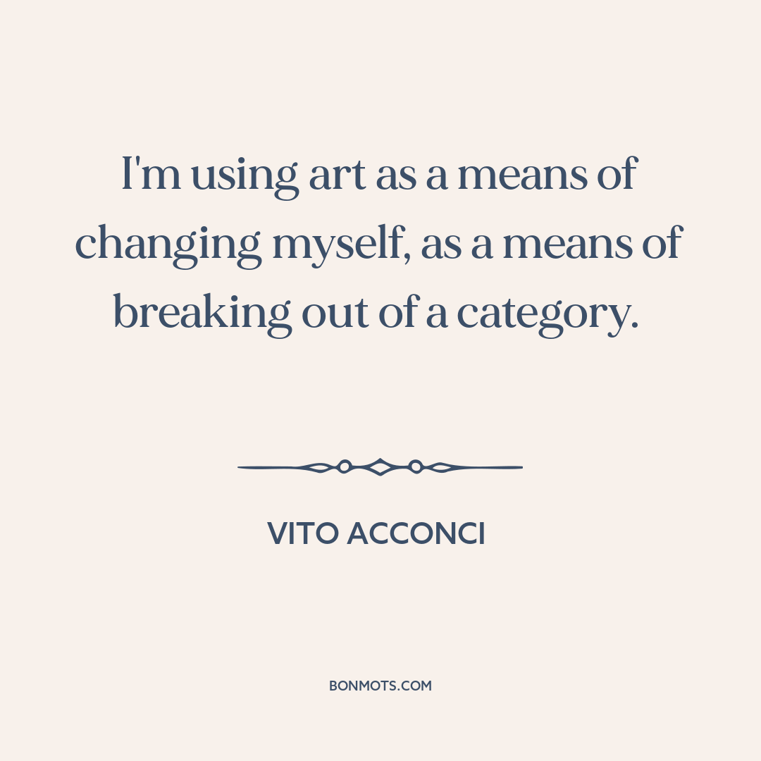 I'm using art as a means of changing myself, as a means of breaking out of a category.