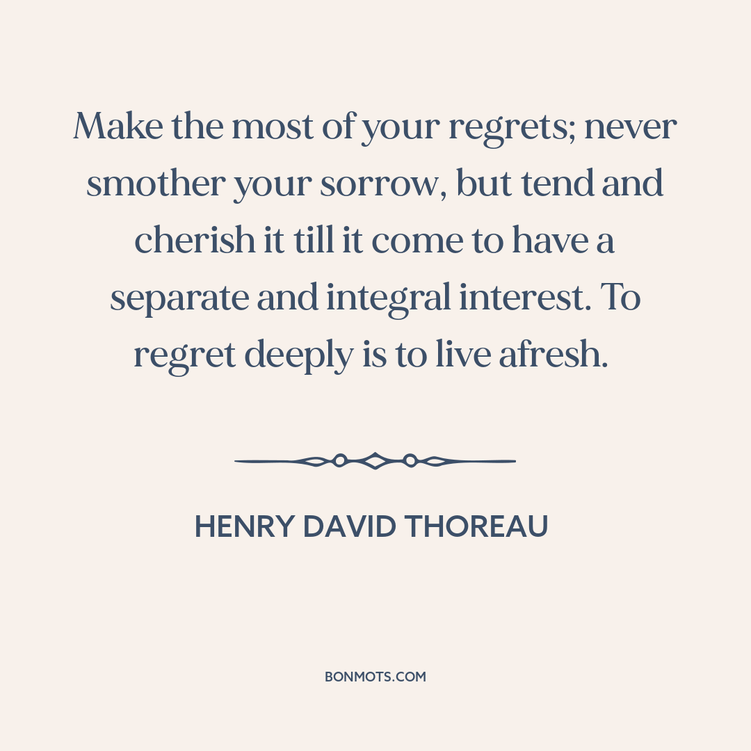 Make the most of your regrets; never smother your sorrow, but tend and cherish it till it come to have a separate and integral interest. To regret deeply is to live afresh.