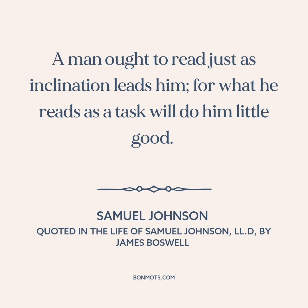 A man ought to read just as inclination leads him; for what he reads as a task will do him little good.