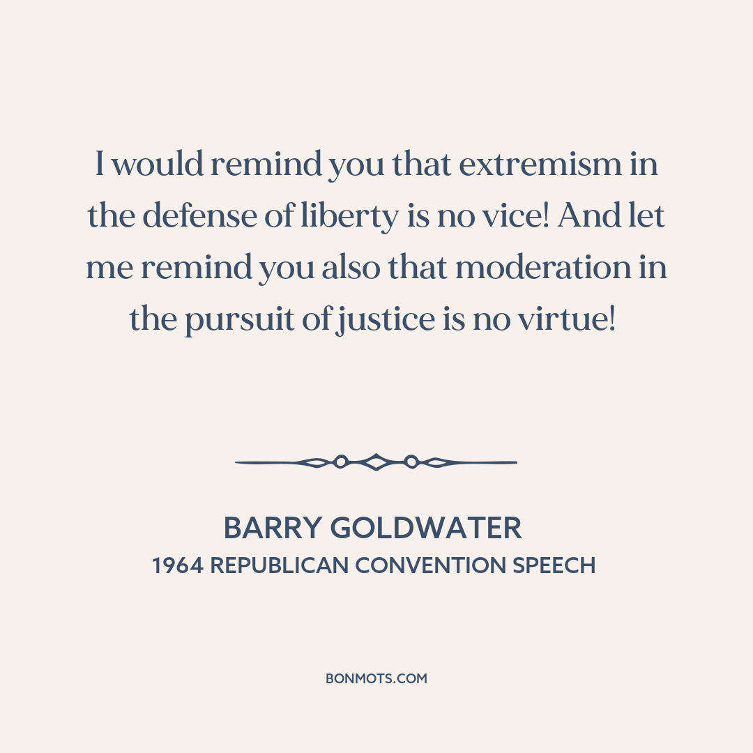I would remind you that extremism in the defense of liberty is no vice! And let me remind you also that moderation in the pursuit of justice is no virtue!