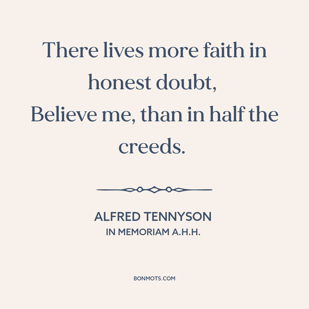 There lives more faith in honest doubt,