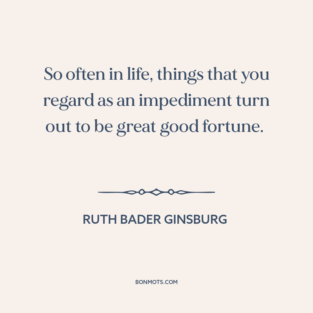 So often in life, things that you regard as an impediment turn out to be great good fortune.