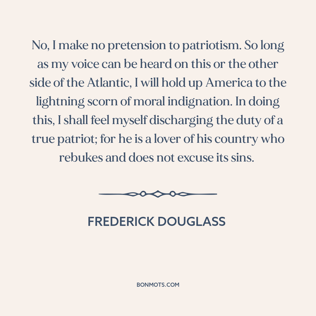 No, I make no pretension to patriotism. So long as my voice can be heard on this or the other side of the Atlantic, I will hold up America to the lightning scorn of moral indignation. In doing this, I shall feel myself discharging the duty of a true patriot; for he is a lover of his country who rebukes and does not excuse its sins.
