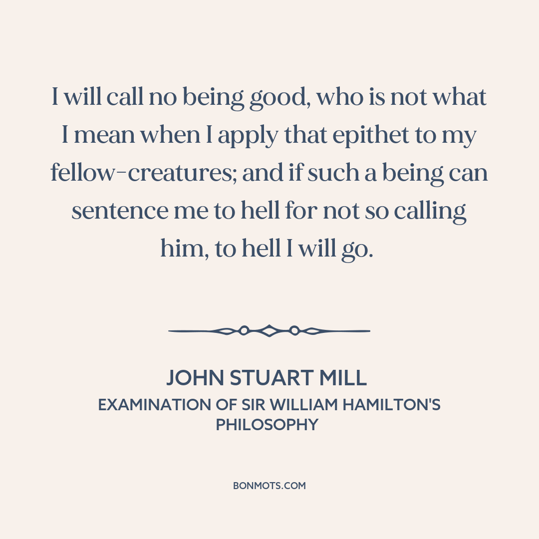 I will call no being good, who is not what I mean when I apply that epithet to my fellow-creatures; and if such a being can sentence me to hell for not so calling him, to hell I will go.