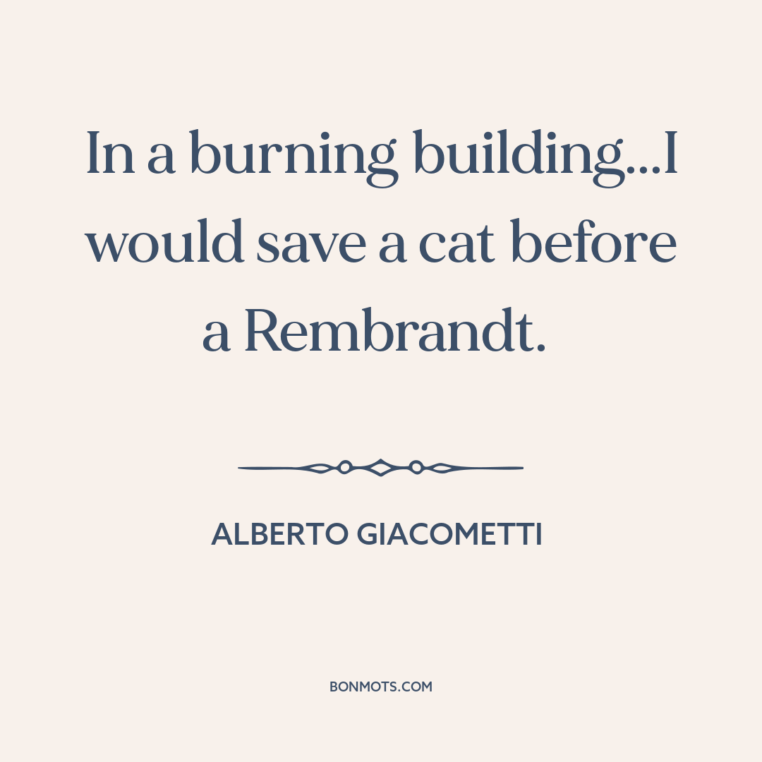 In a burning building...I would save a cat before a Rembrandt.