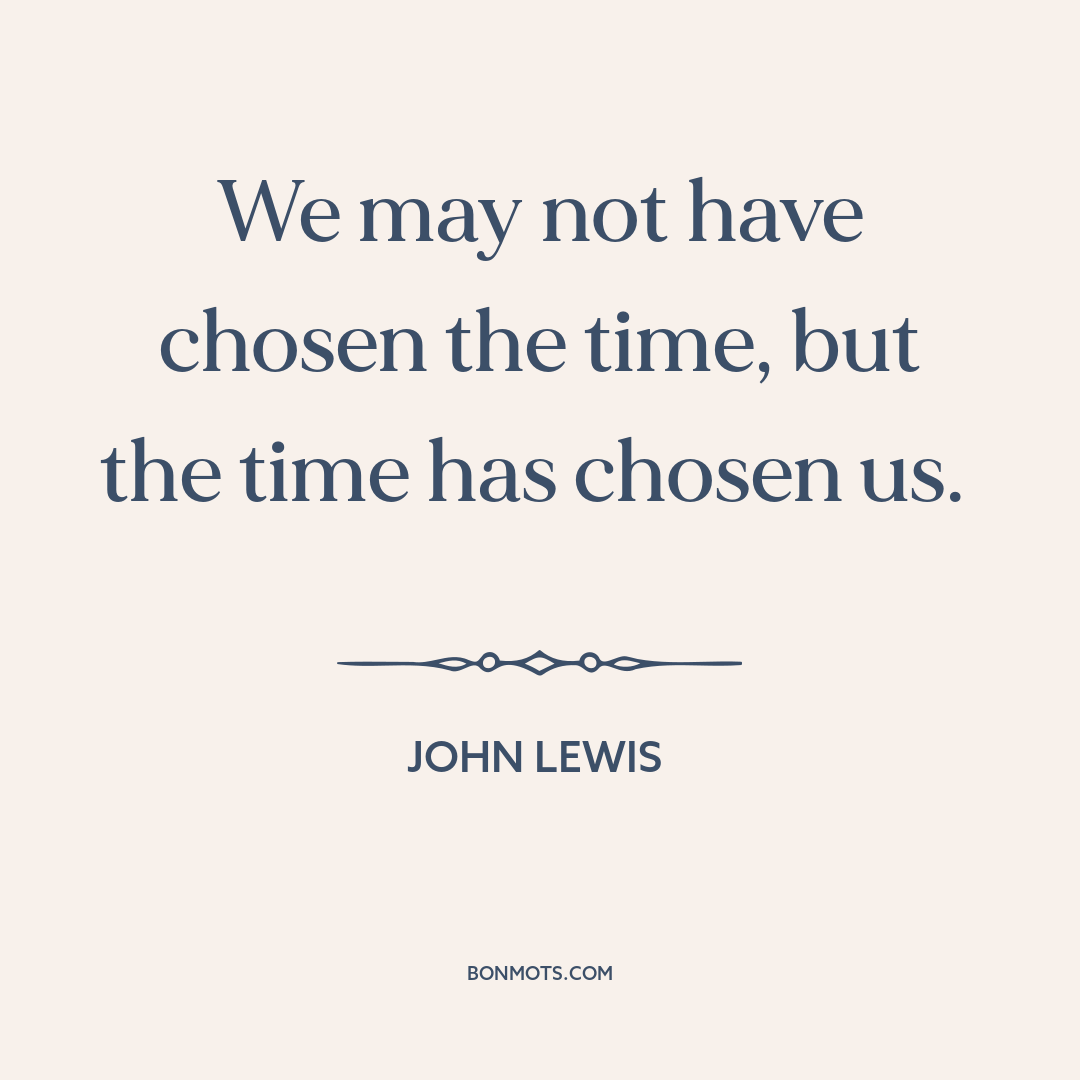 Lewis, John [@repjohnlewis]. "We may not have chose the time, but the time has chosen us." Twitter, 11 July 2016, 4:21 p.m., twitter.com/repjohnlewis/status/752505298326319104