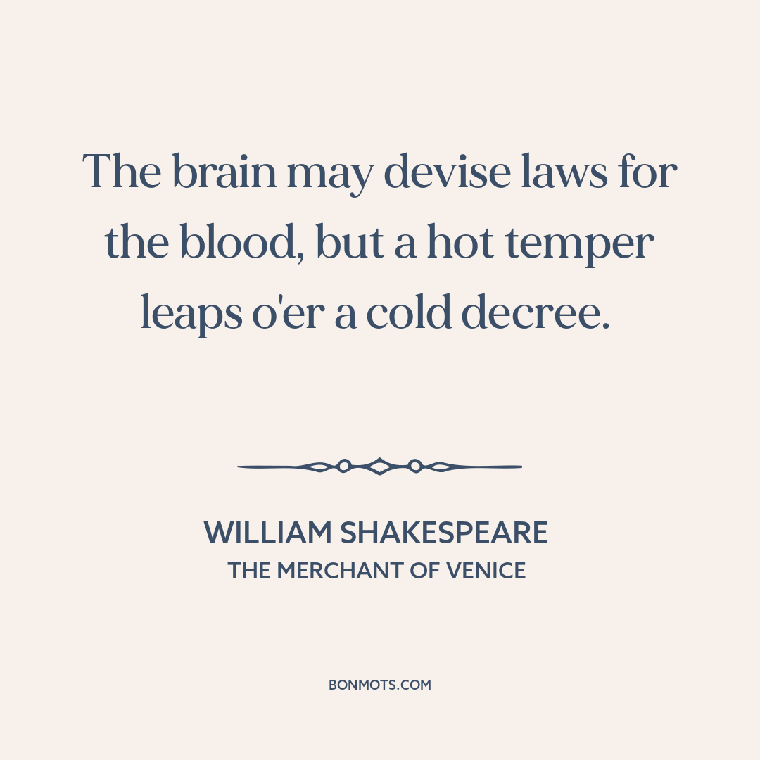 The brain may devise laws for the blood, but a hot temper leaps o'er a cold decree.
