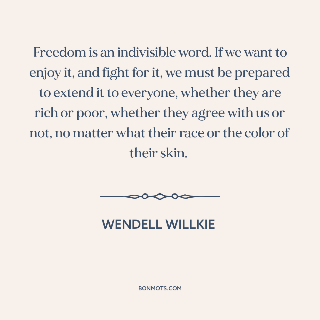 Freedom is an indivisible word. If we want to enjoy it, and fight for it, we must be prepared to extend it to everyone, whether they are rich or poor, whether they agree with us or not, no matter what their race or the color of their skin.