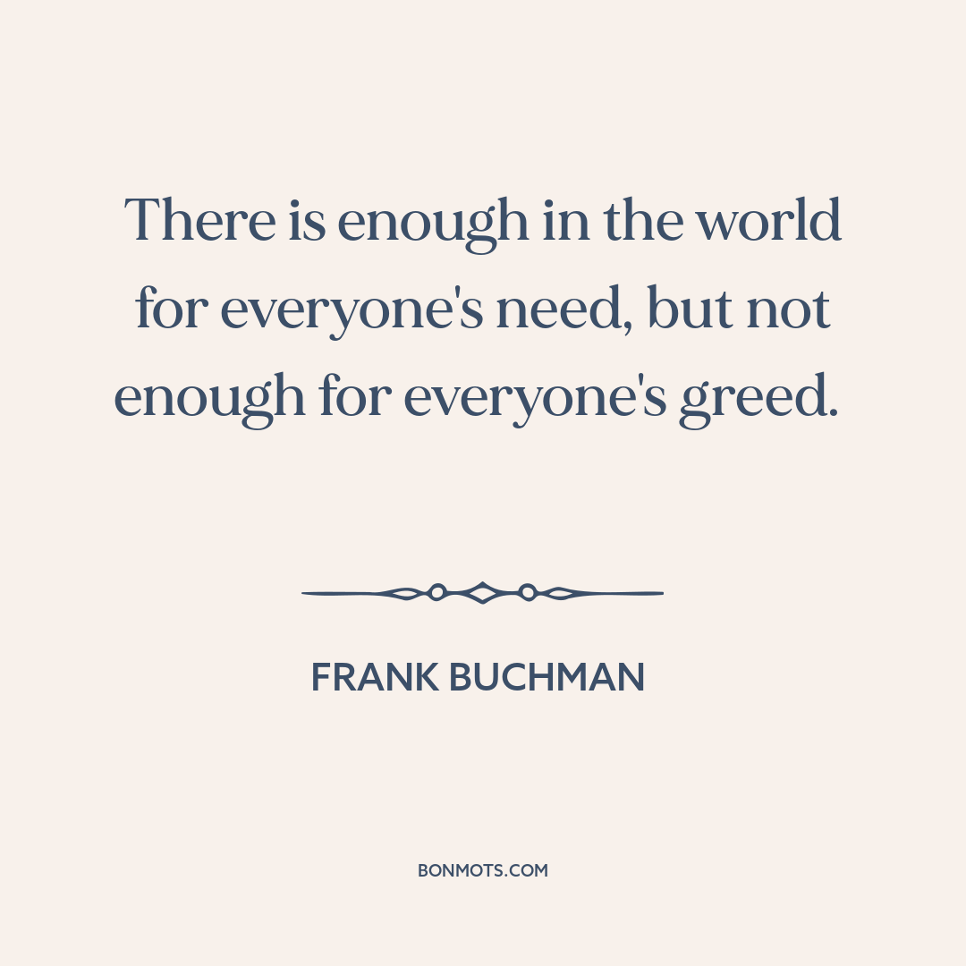 There is enough in the world for everyone's need, but not enough for everyone's greed.