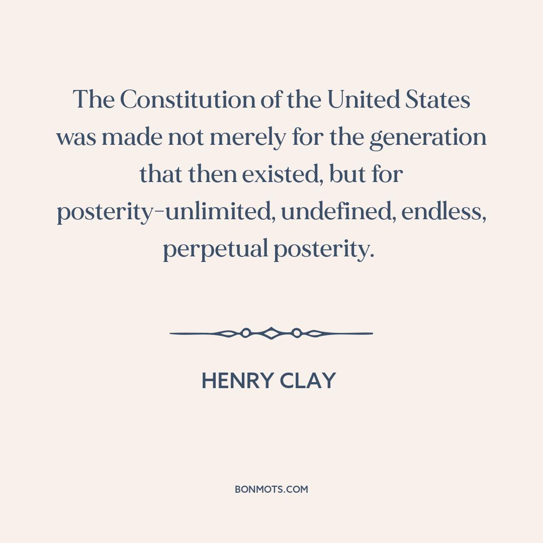 The Constitution of the United States was made not merely for the generation that then existed, but for posterity-unlimited, undefined, endless, perpetual posterity.