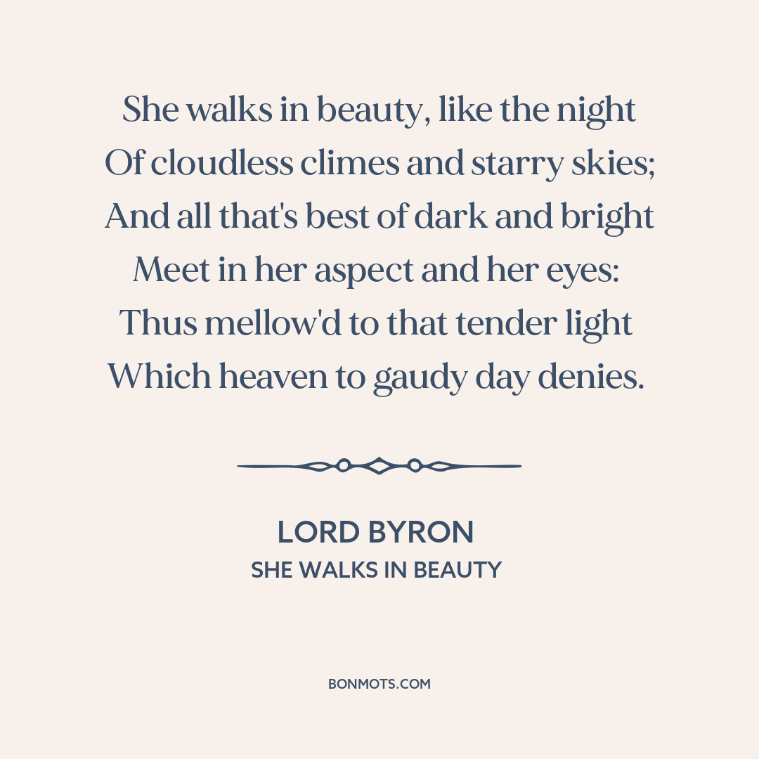 Lord Byron. "She Walks in Beauty." Lord Byron: The Major Works, edited by Jerome J. McGann. Oxford University Press, 2008, st. 1.