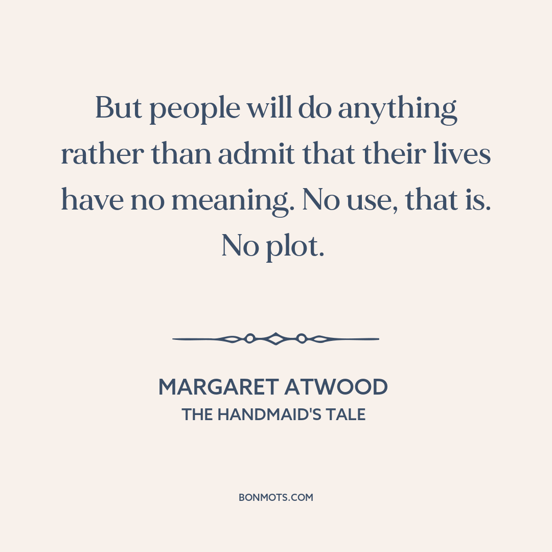 But people will do anything rather than admit that their lives have no meaning. No use, that is. No plot.