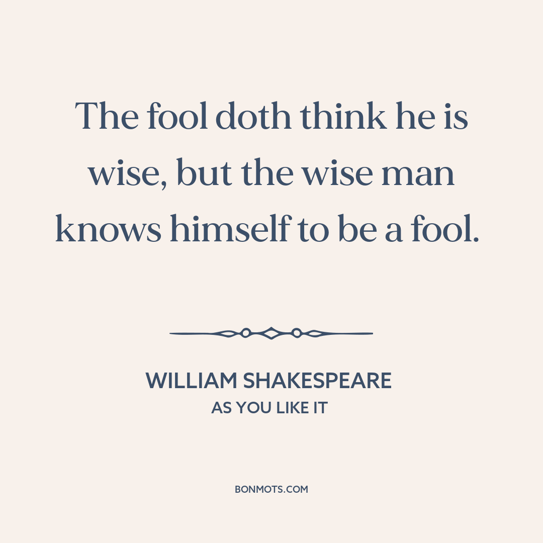 The fool doth think he is wise, but the wise man knows himself to be a fool.