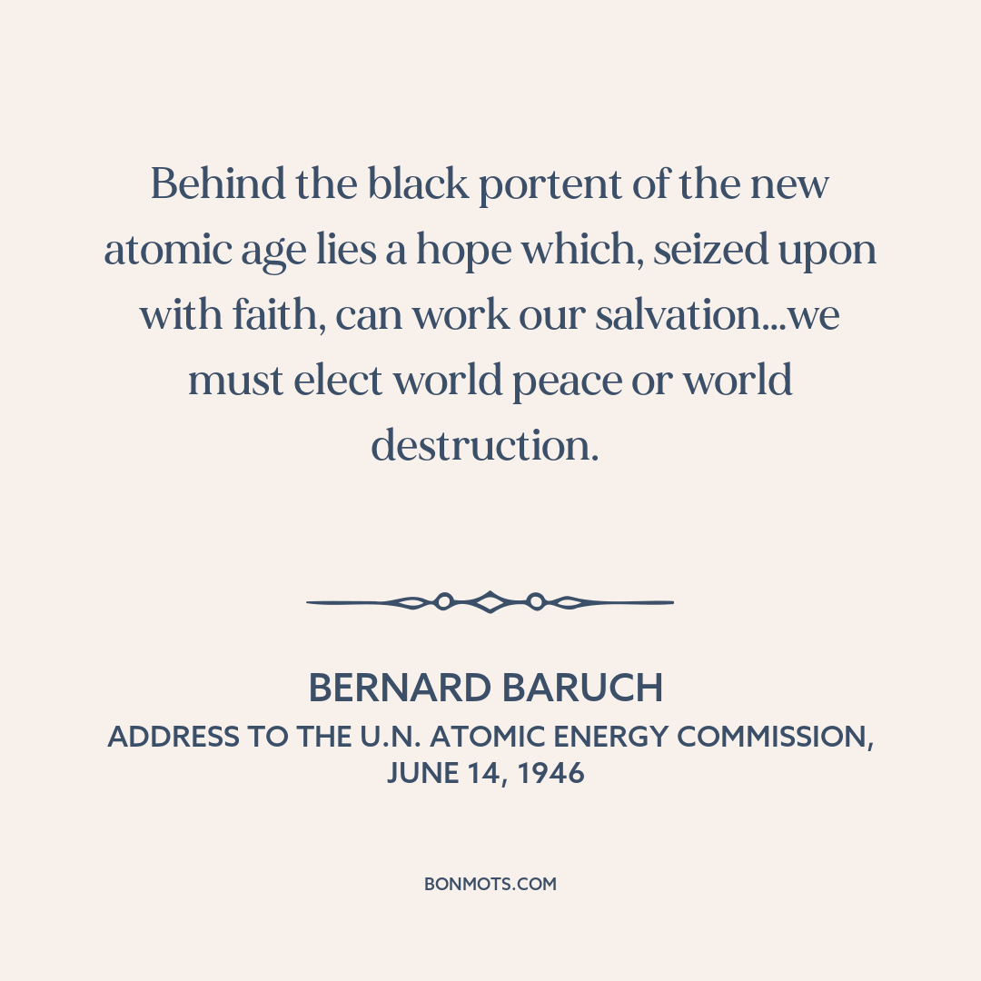 Behind the black portent of the new atomic age lies a hope which, seized upon with faith, can work our salvation…we must elect world peace or world destruction.