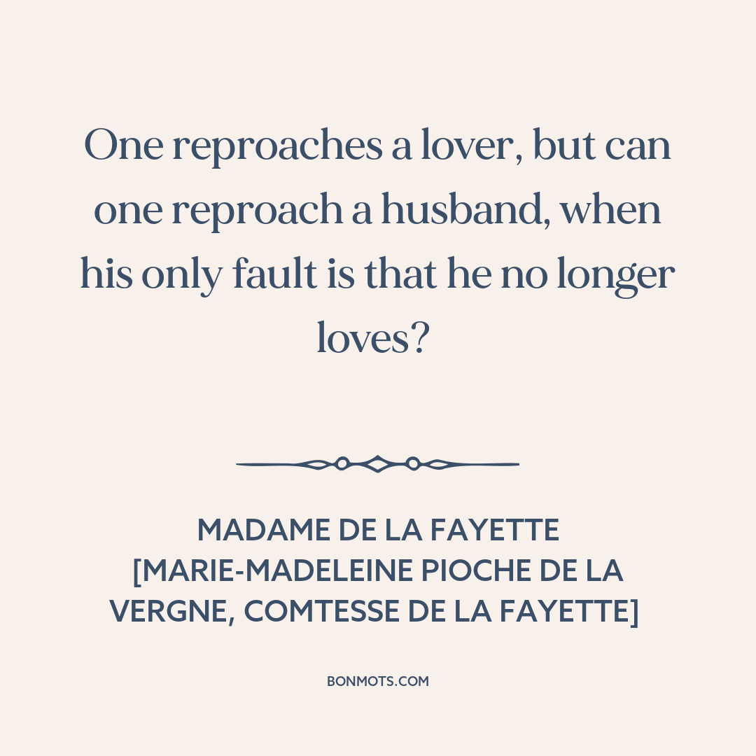 One reproaches a lover, but can one reproach a husband, when his only fault is that he no longer loves?