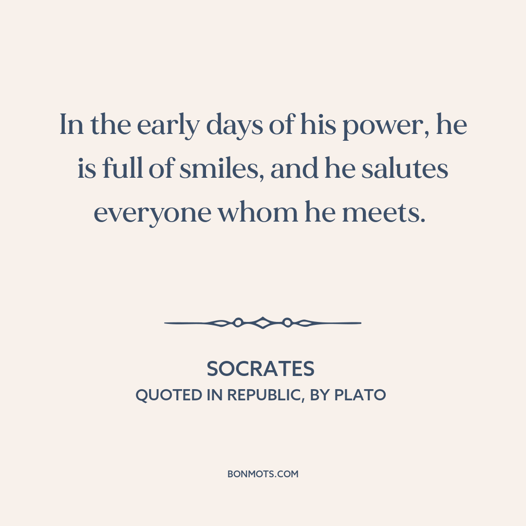 In the early days of his power, he is full of smiles, and he salutes everyone whom he meets.