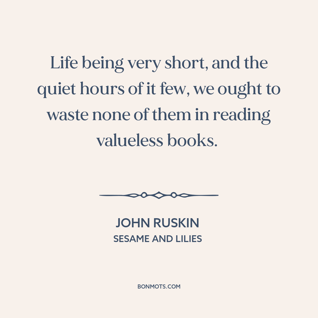 Life being very short, and the quiet hours of it few, we ought to waste none of them in reading valueless books.