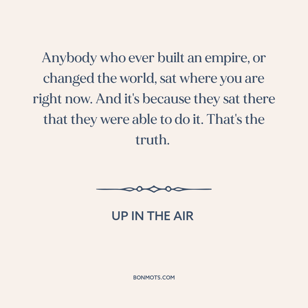 Anybody who ever built an empire, or changed the world, sat where you are right now. And it's because they sat there that they were able to do it. That's the truth.