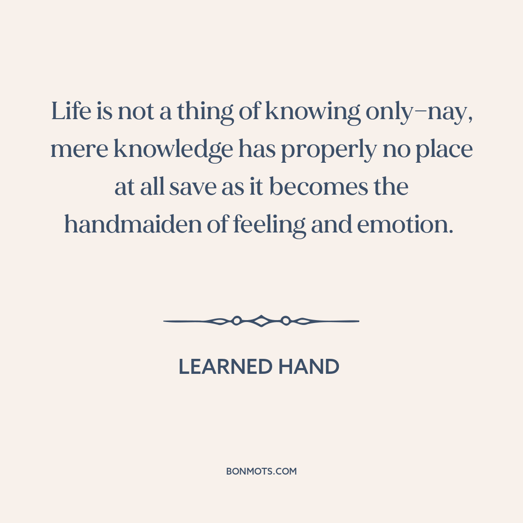 Life is not a thing of knowing only—nay, mere knowledge has properly no place at all save as it becomes the handmaiden of feeling and emotion.
