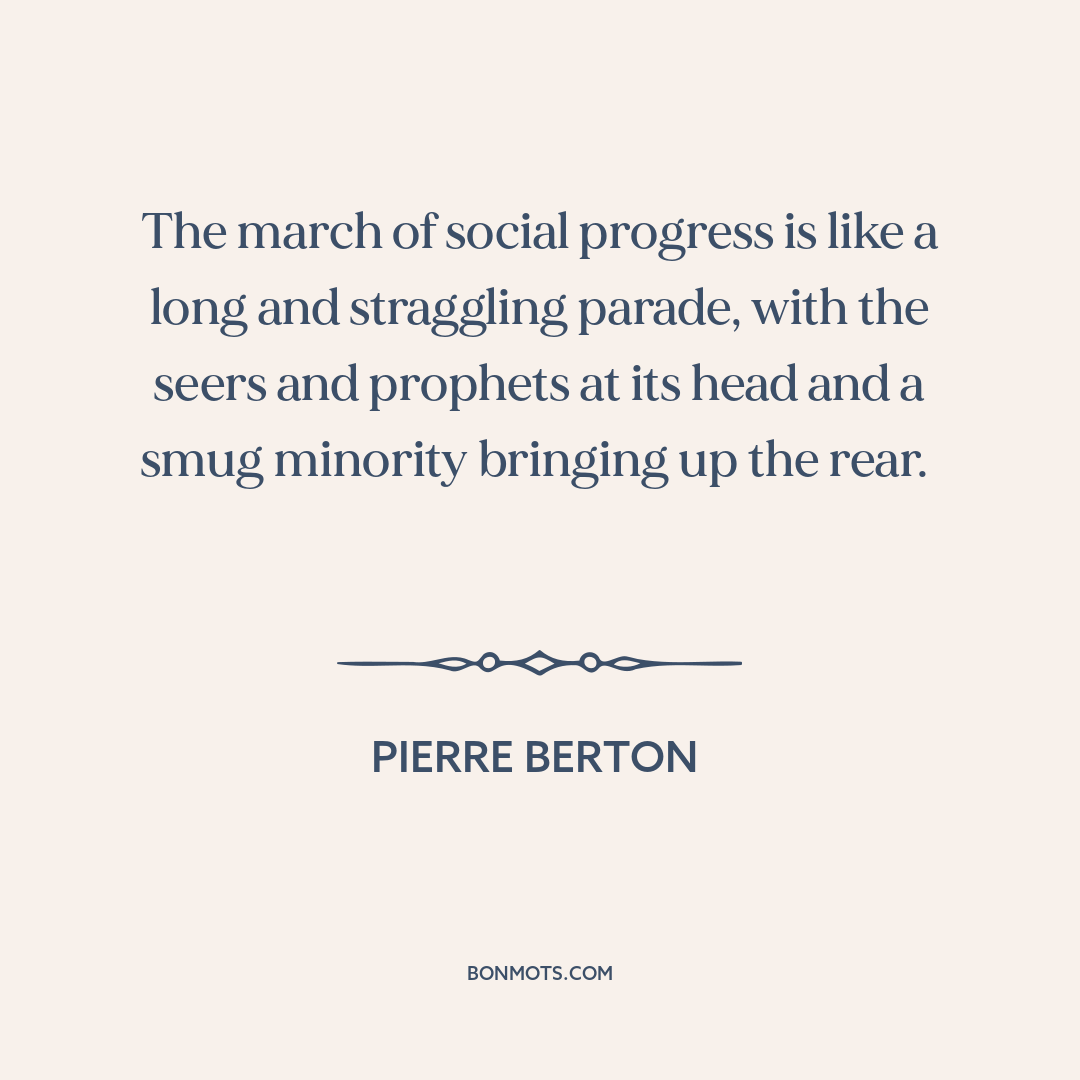 The march of social progress is like a long and straggling parade, with the seers and prophets at its head and a smug minority bringing up the rear.