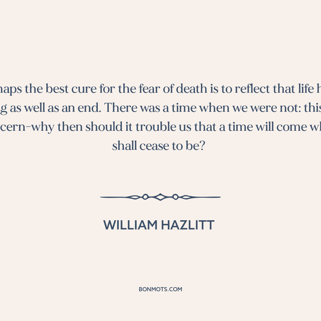 Perhaps the best cure for the fear of death is to reflect that life has a beginning as well as an end. There was a time when we were not: this gives us no concern-why then should it trouble us that a time will come when we shall cease to be?