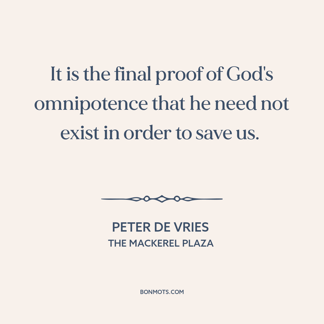 It is the final proof of God's omnipotence that he need not exist in order to save us.