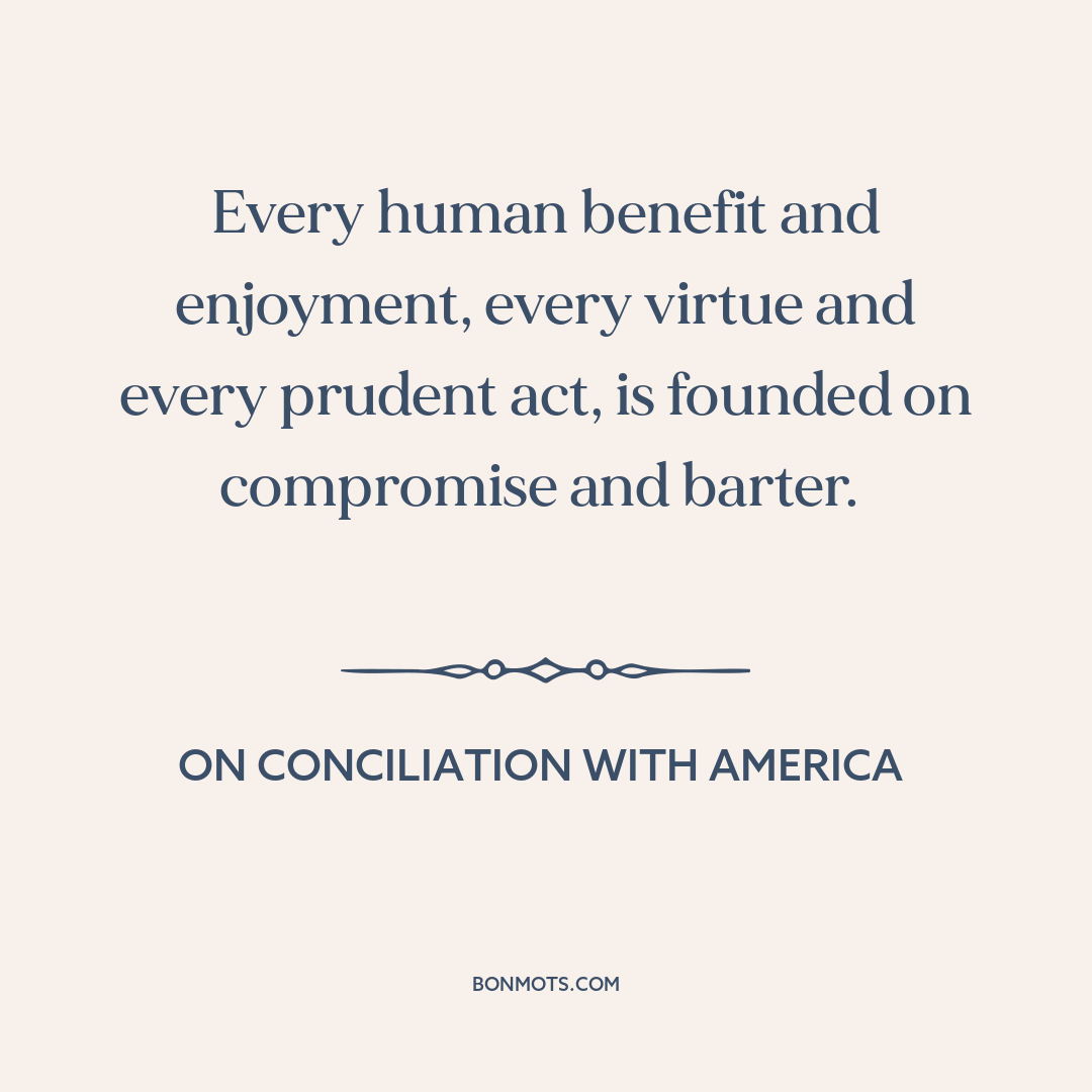 Every human benefit and enjoyment, every virtue and every prudent act, is founded on compromise and barter.