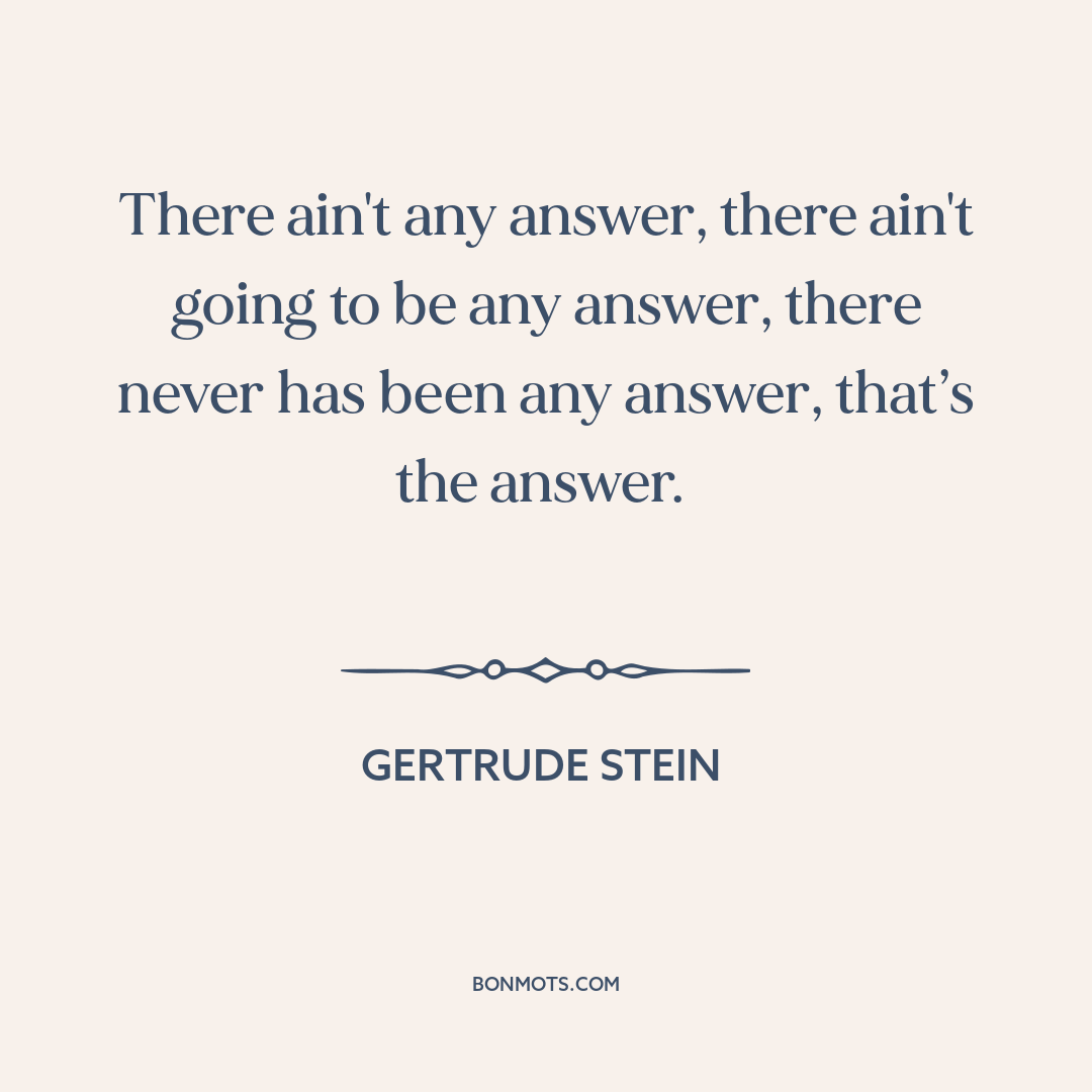 There ain't any answer, there ain't going to be any answer, there never has been any answer, that’s the answer.